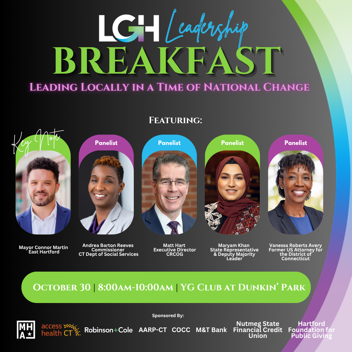 Leadership Greater Hartford’s annual Leadership Breakfast returns on Thursday, October 30, 2025—a powerful morning of connection, inspiration, and community celebration. This year’s theme, Leading Locally in a Time of National Change, will explore how local leadership can spark meaningful action in our neighborhoods and communities, even amidst national shifts and challenges.